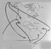 | Se inicia el recorrido del museo con un cuadro que establece una comparación entre las culturas guatemaltecas y las del resto del mundo. Para la mejor comprensión del proceso del poblamiento de América, en esta sala se han reconstruido escenas que lo ilustran, emprezando con el paso por el Estrecho de Behring. El mapa ejemplifica tres teorías sobre el poblamiento de América: la del Origen Autóctono, planteada por Florentino Ameghino, que ubica el origen del hombre en Argentina; la del Origen Múltiple de Paul Rivet, quien sostiene que el hombre proviene de las Islas Melano-Polinesias y Australia; y la del origen único de Alex Hrdlika, la más aceptada, propone que el hombre llegó a América atravesando el Estrecho de Behring. Las siguientes vitrinas reconstruyen el habitat del hombre prehistórico en cuevas o abrigos rocosos estacionales; la cacería del mamut en las planicies, como Clovis y Folsom; y una muestra de restos óseos de animales prehistóricos de Guatemala. También se ejemplifica la formación de las primeras aldeas que utilizaron las técnicas agrarias de cultivo con bastón, quema y roza. |  |
