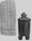 | Esta sala contiene diversos ejemplos de escultura monumental del Período Preclásico y Clásico. Predomina el uso de piedra caliza en las tierras bajas y basalto en la Costa Sur y el Altiplano. Se esculpieron estelas, dinteles y escalinatas con temas variados; páneles, tronos y altares. Estos últimos, de forma circular, se colocaban frente a las estelas. No se conoce con certeza su función, pero se asocian con la religión. El dintel 3 de Piedras Negras en exhibición, presenta una escena cortesana del reinado de un gobernante, atestigua por el rey Pájaro Jaguar de Yaxchilán, Chiapas, México y por otros miembros de la familia real y nobles locales. A continuación, la estela 4 de Ucanal registra el autosacrificio del último gobernante local durante la conmemoración de un fin de período. El soberano está frente a uno de sus nobles, ambos sostienen un cetro maniquí, símbolo de poder. También se puede observar estelas provenientes de Naranjo, Ceibal, Piedras Negras, La Amelia y otros lugares. En la rotonda se encuentran varias piezas con figuras zoomorfas, mitológicas, esqueléticas, deidades antropomorfas, esculturas con espiga y otras, provenientes de el Baúl en la Costa Sur. Las esculturas de Kaminaljuyú, talladas en piedra volcánica, muestran figuras antropomorfas con el vientre abultado, en diferentes posiciones y con ornamento. |  |