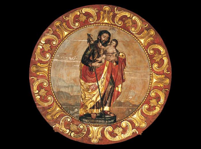Material: Madera (cedro) •• Técnica: Talla, encarnado, policromado, originalmente dorado y plateado, con realces y decoraciones •• Autor: Anónimo •• Tema: Religioso •• Medidas: 1.10 y 0.66 mts. •• Siglo: VIII.